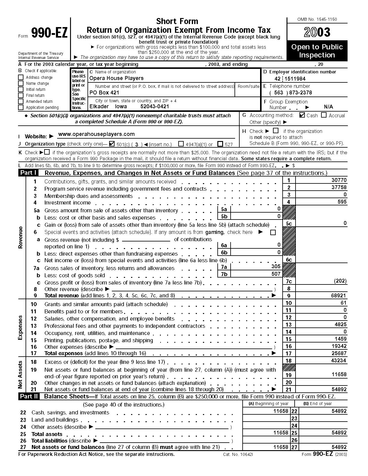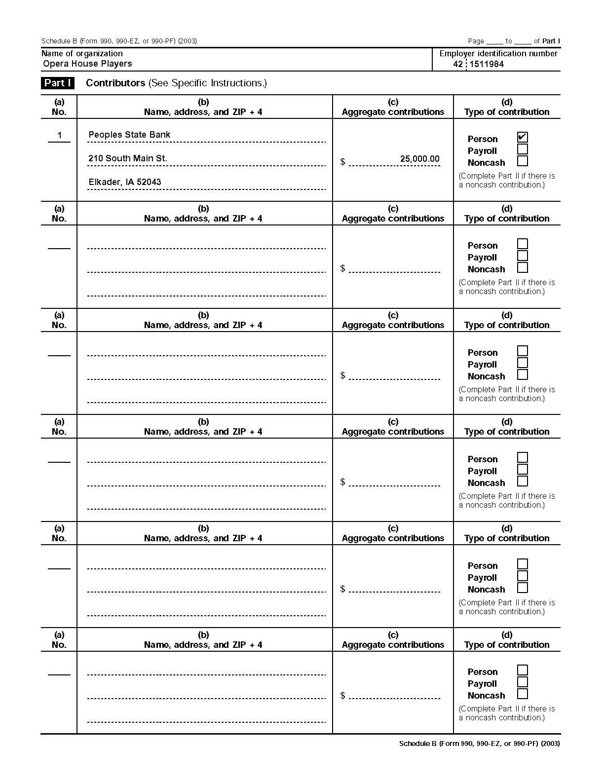 2003 990EZ and supporting schedules